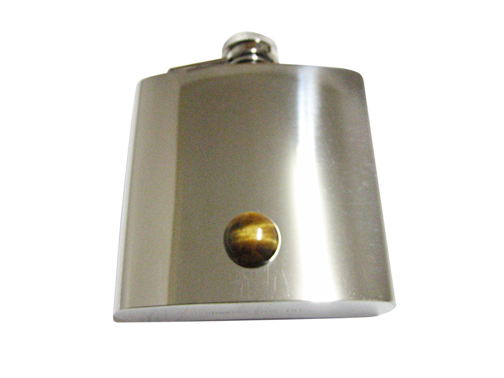 Round Tigers Eye 6 Oz. Stainless Steel Flask