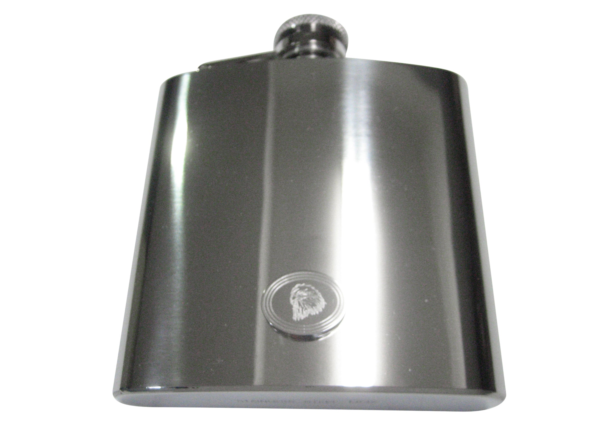 Silver Toned Etched Oval Eagle Bird Head 6oz Flask
