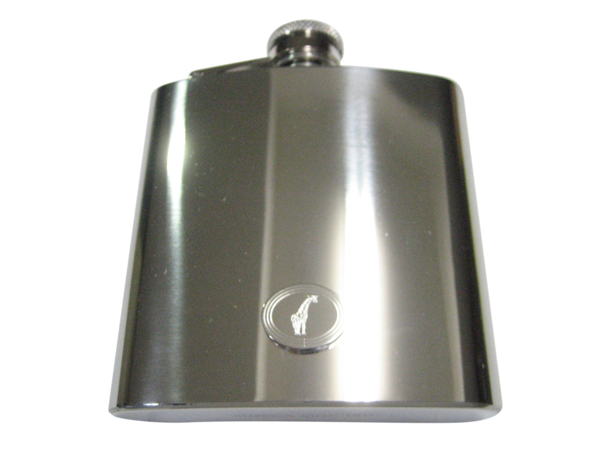 Silver Toned Etched Oval Giraffe 6oz Flask