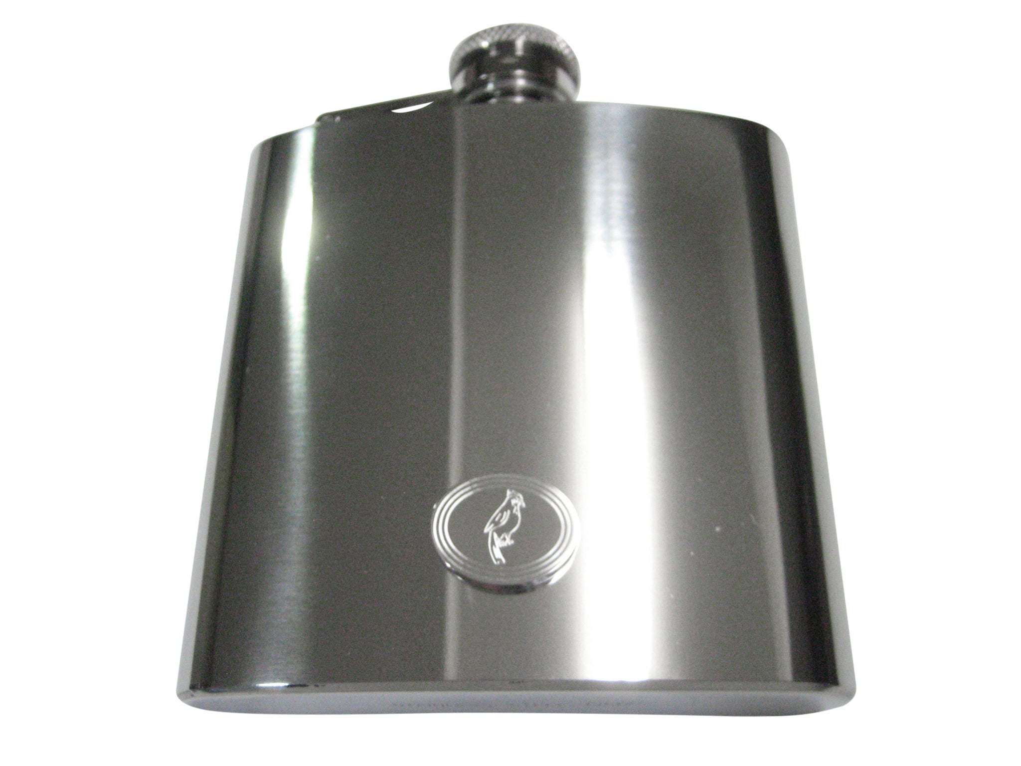 Silver Toned Etched Oval Small Tropical Bird 6oz Flask