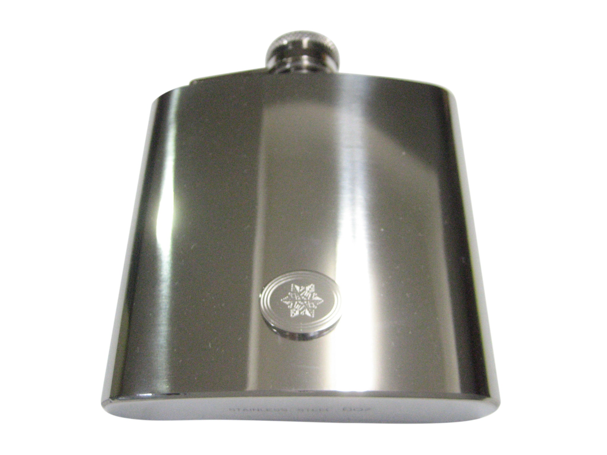 Silver Toned Etched Oval Snowflake 6oz Flask