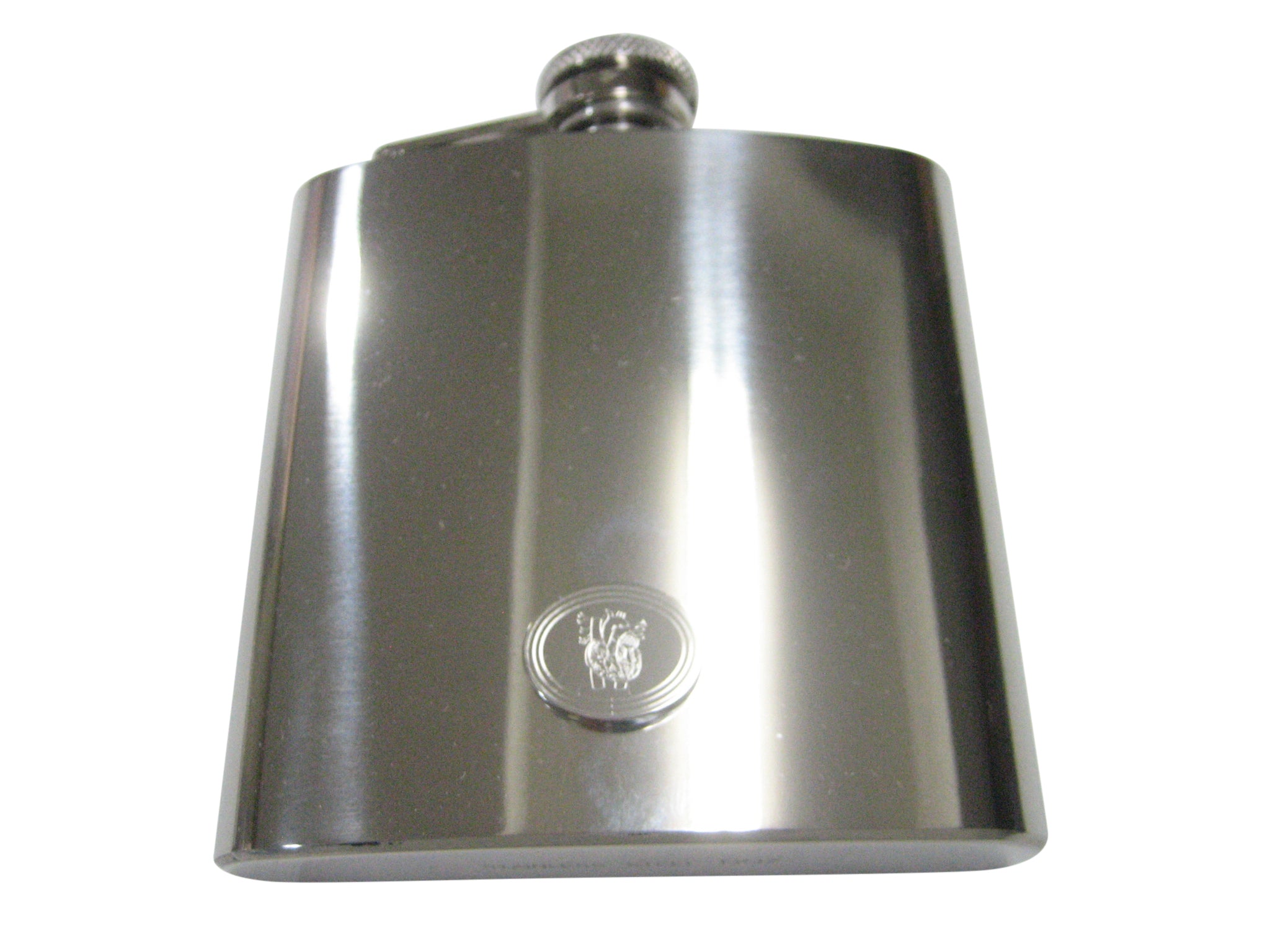 Silver Toned Oval Etched Anatomical Heart 6oz Flask