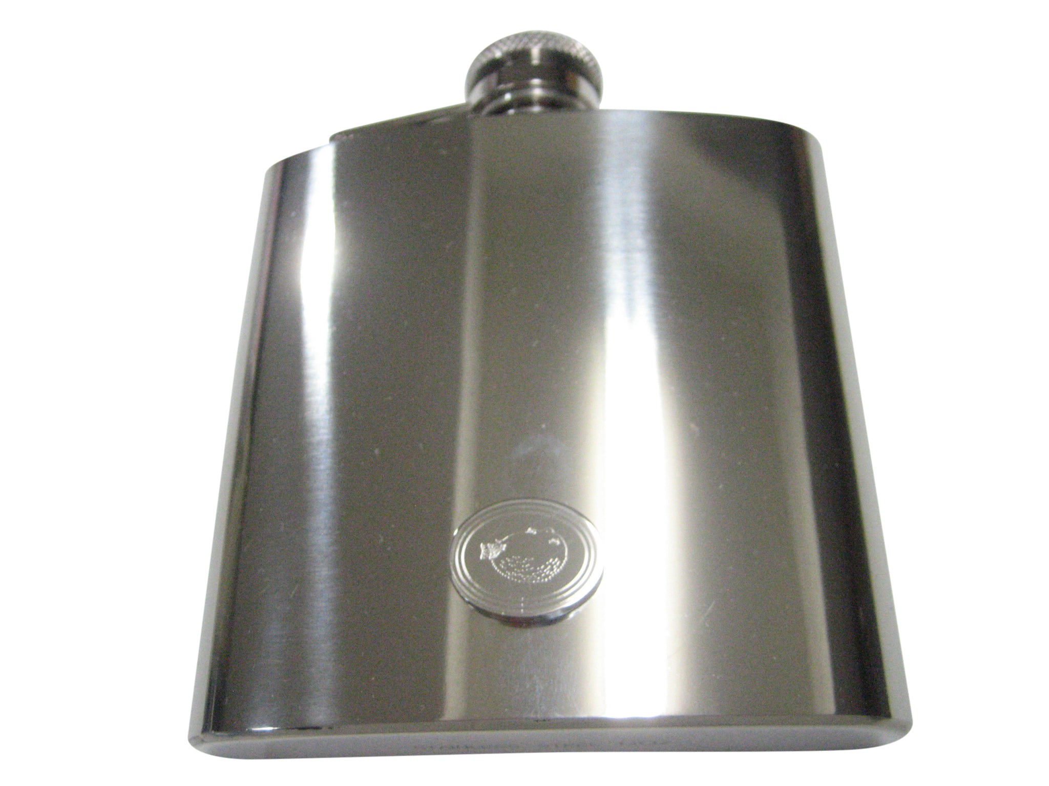 Silver Toned Oval Etched Blowfish Fugu Puffer Fish 6oz Flask
