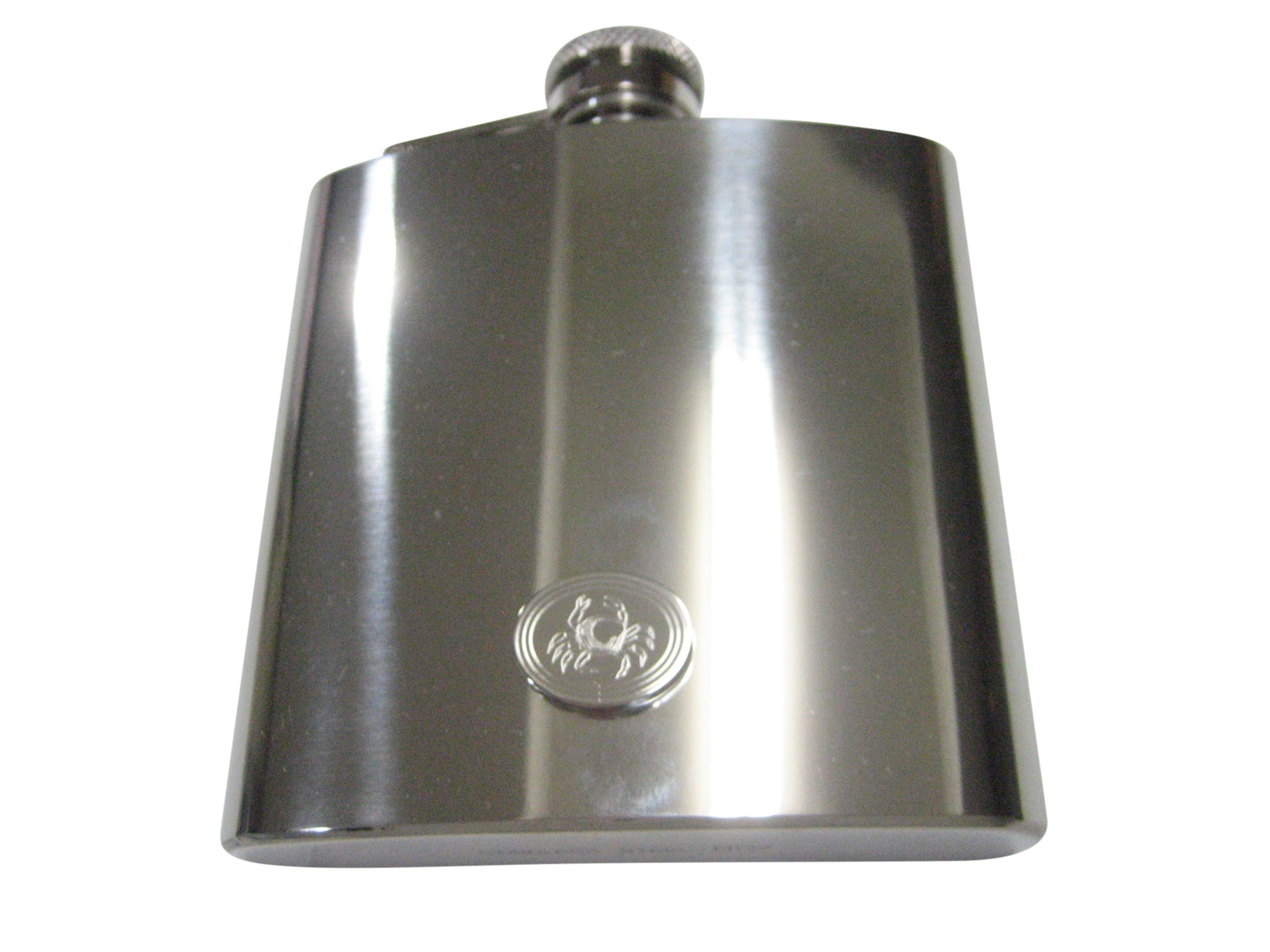 Silver Toned Oval Etched Crab 6oz Flask