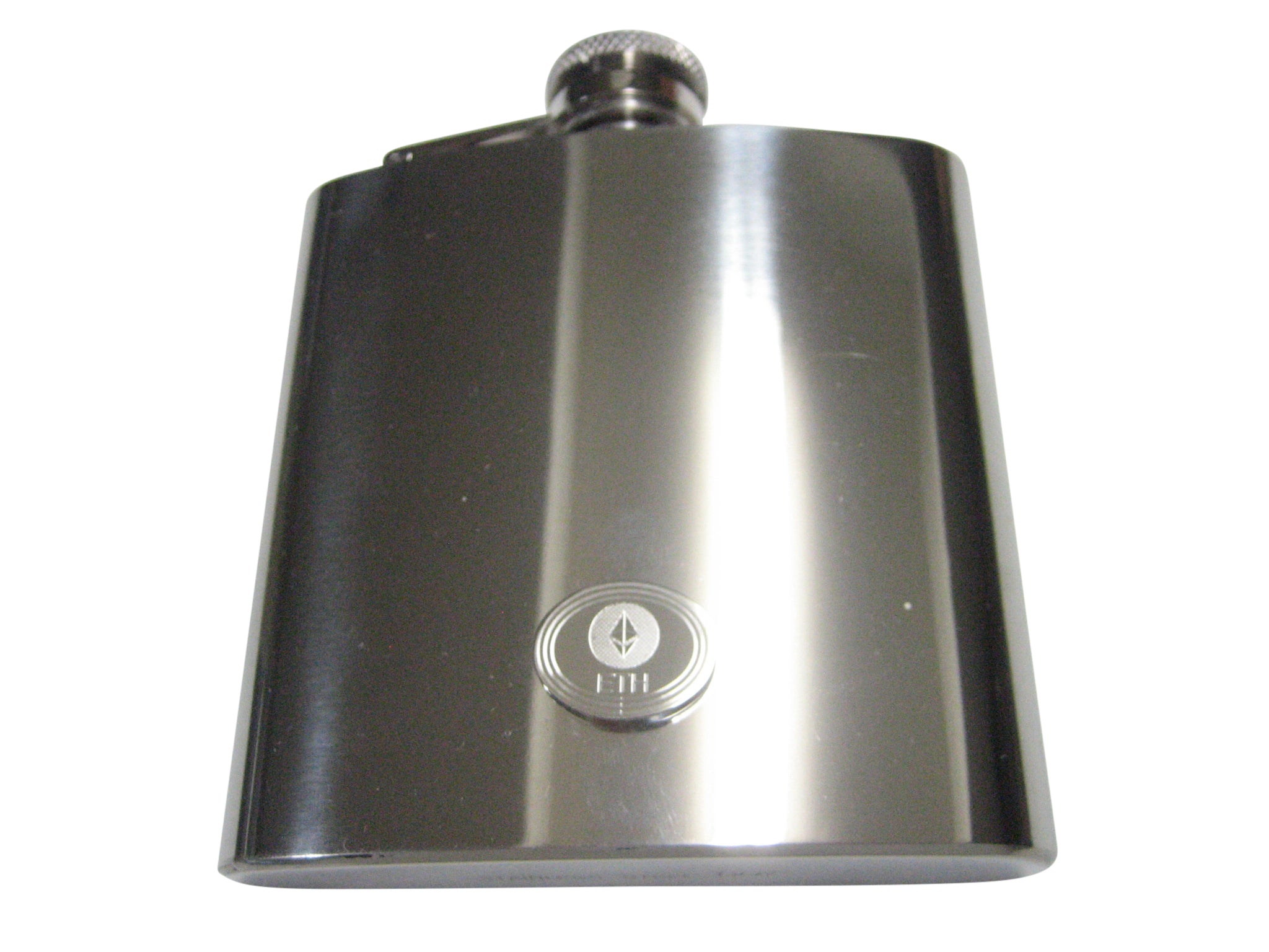 Silver Toned Oval Etched Ethereum Coin Cryptocurrency Blockchain 6oz Flask