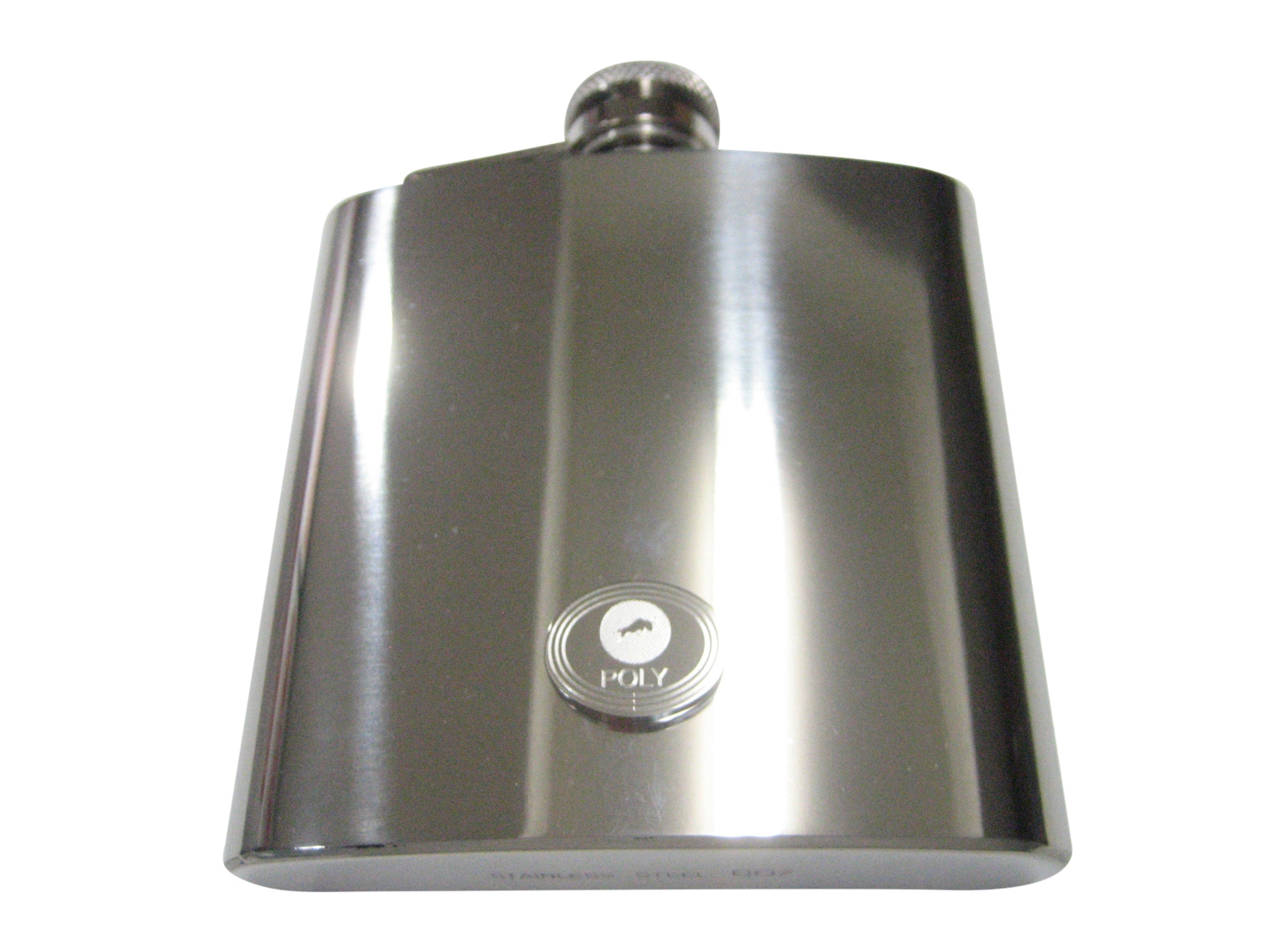 Silver Toned Oval Pendant Etched Polymath Coin POLY Cryptocurrency Blockchain 6oz Flask