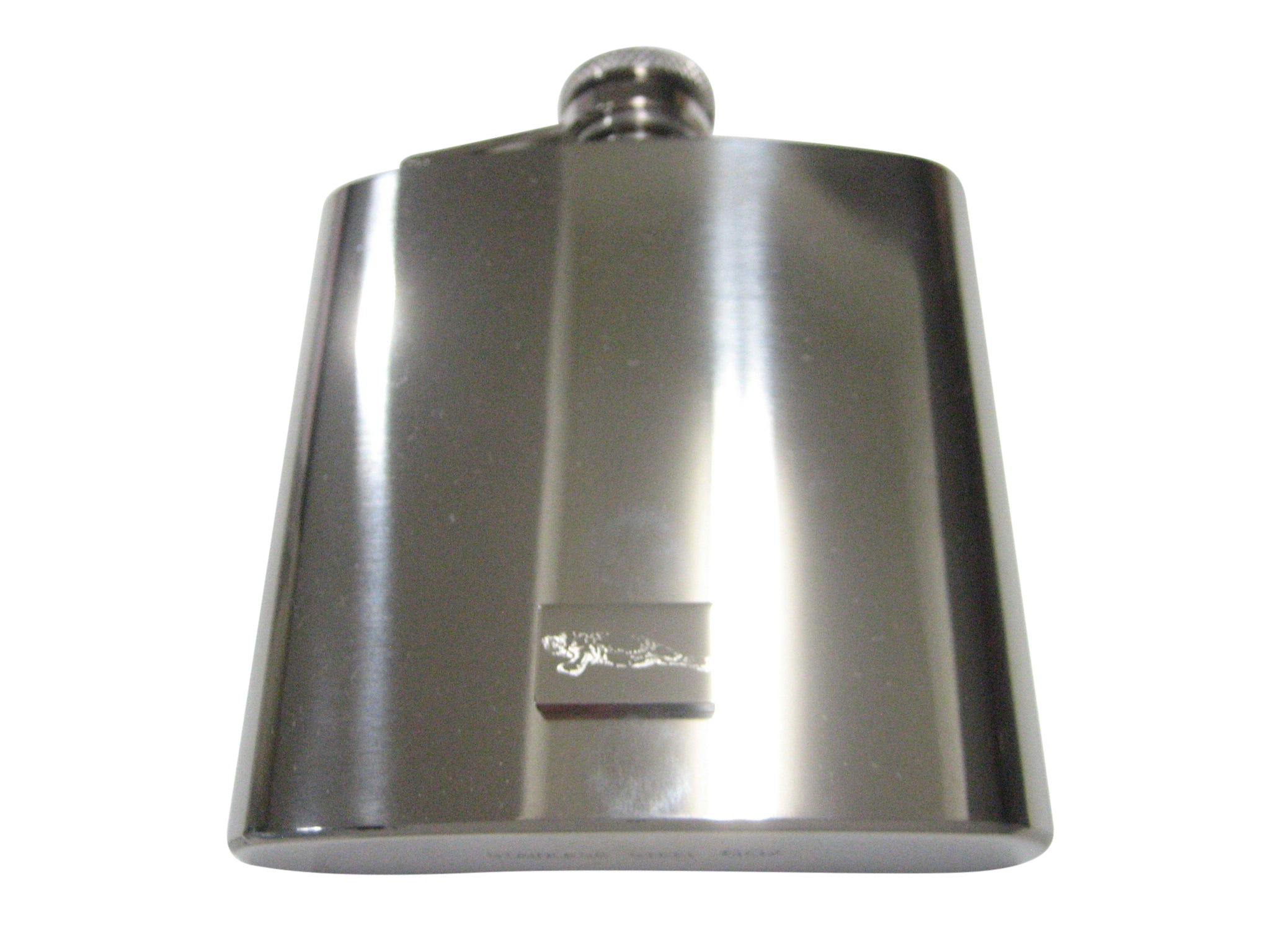 Silver Toned Rectangular Etched Manatee 6oz Flask