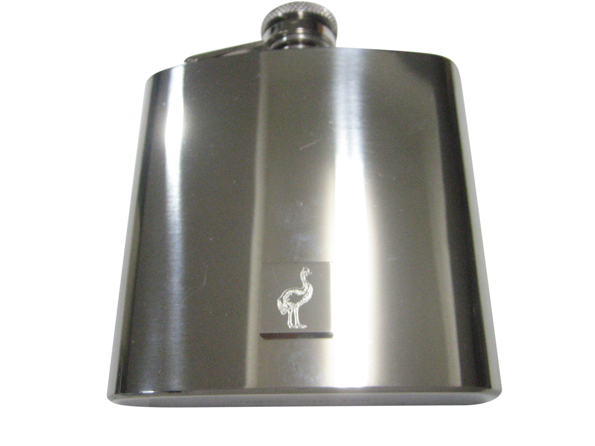 Silver Toned Square Etched Cassowary Bird 6oz Flask