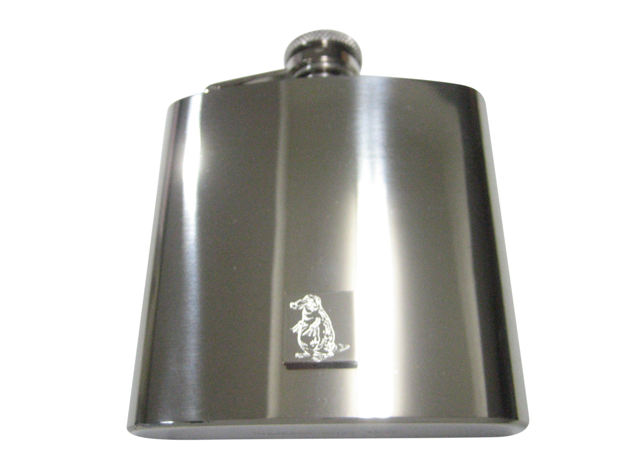 Silver Toned Square Etched Duck Billed Platypus 6oz Flask