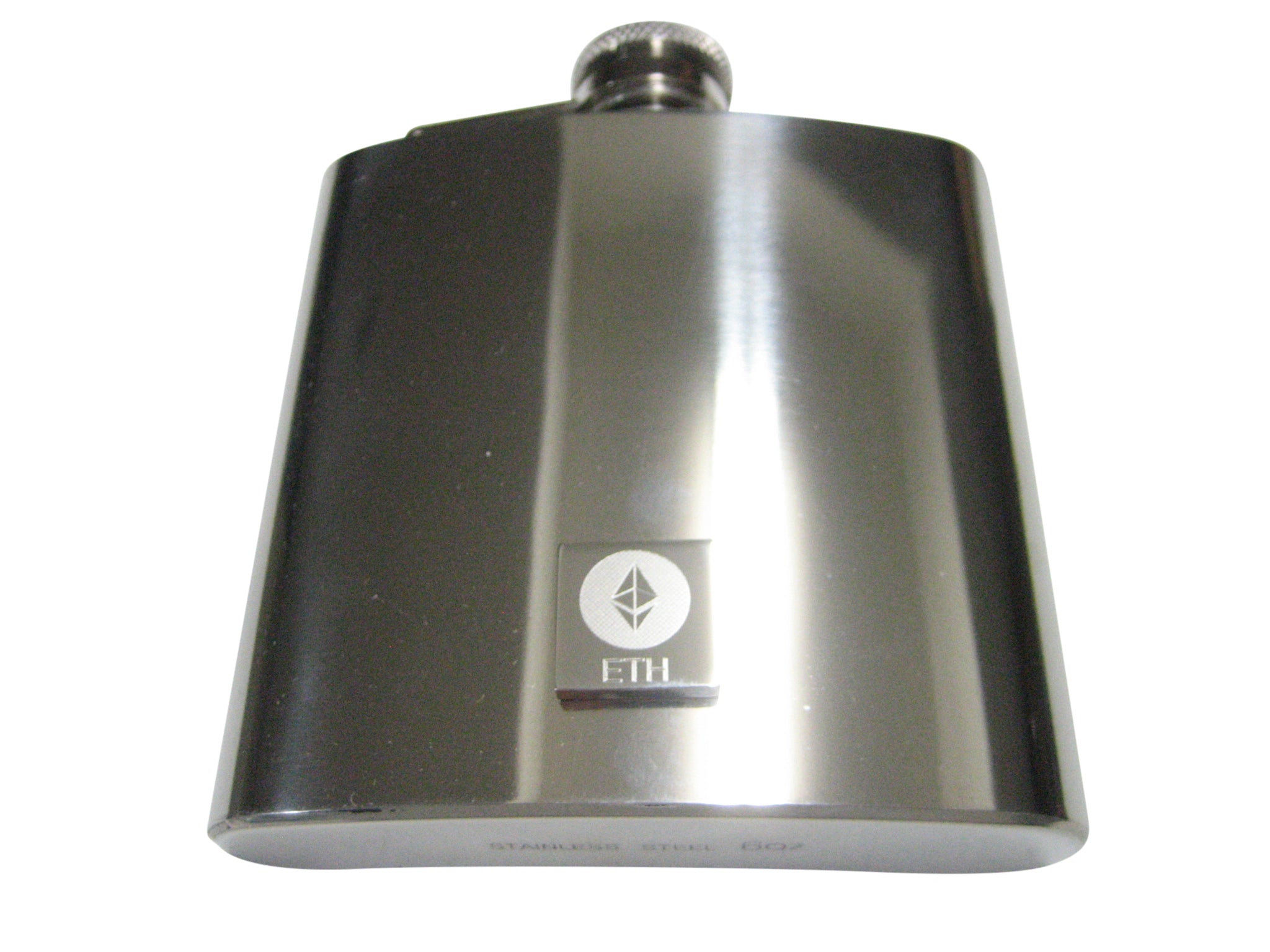 Silver Toned Square Etched Ethereum Coin Cryptocurrency Blockchain 6oz Flask