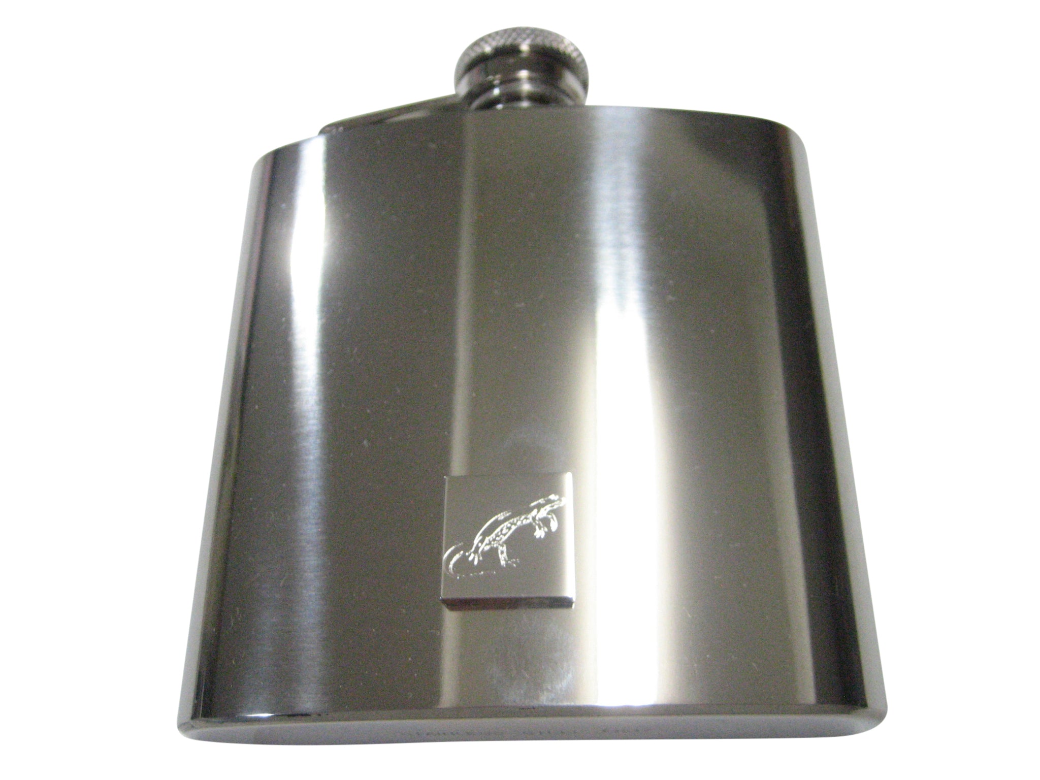 Silver Toned Square Etched Newt Gecko Lizard 6oz Flask