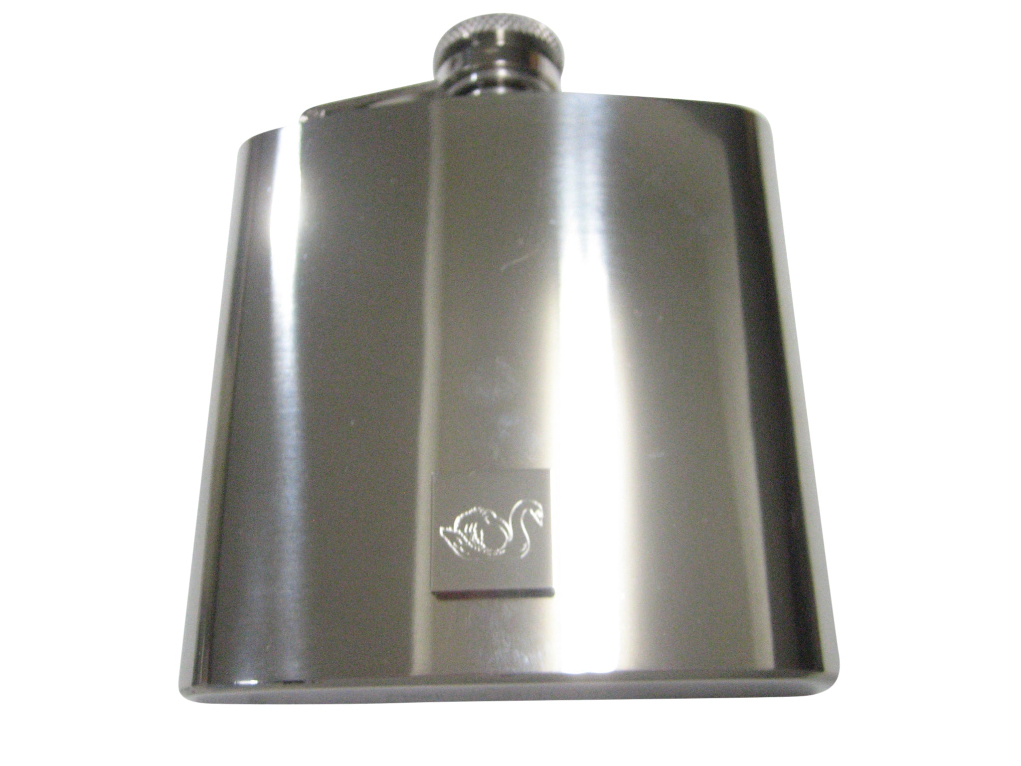 Silver Toned Square Etched Swan Bird 6oz Flask