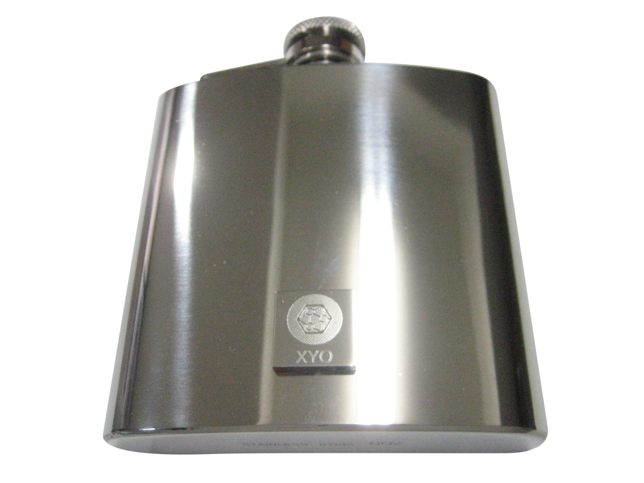 Silver Toned Square Pendant Etched XYO Coin Cryptocurrency Blockchain 6oz Flask