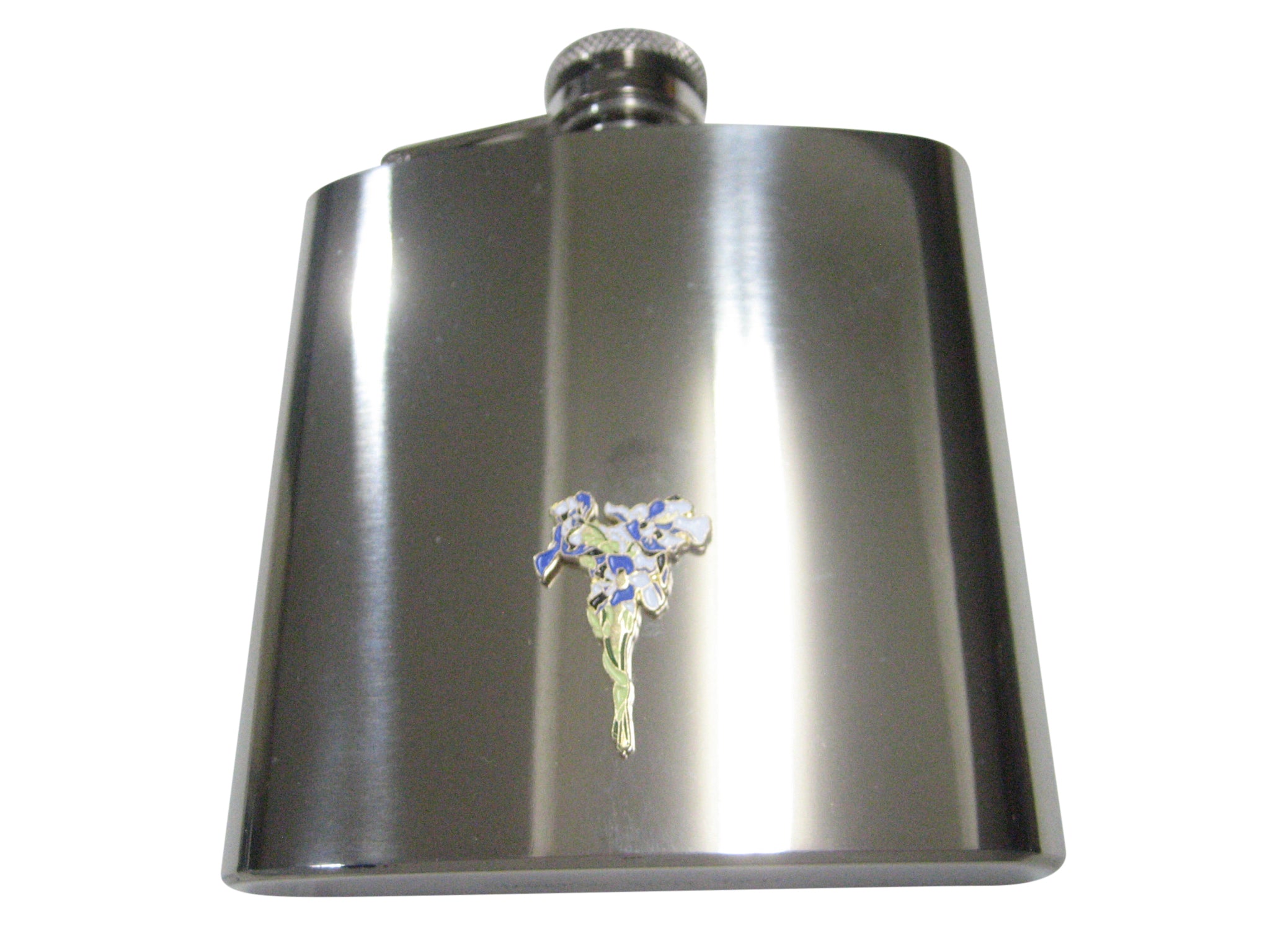 Violet and White Toned Iris Flower 6oz Flask