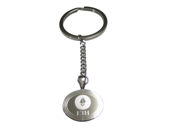 Silver Toned Oval Etched Ethereum Coin Cryptocurrency Blockchain Pendant Keychain