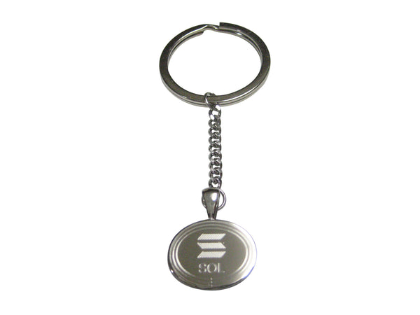 Silver Toned Oval Etched Solana Coin Cryptocurrency Blockchain Pendant Keychain