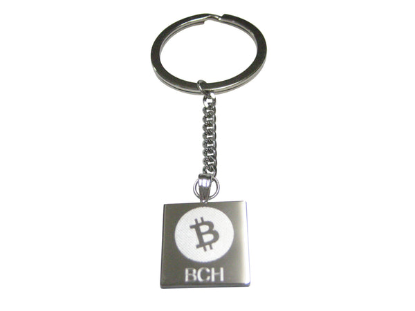 Silver Toned Square Etched Bitcoin Cash Coin Cryptocurrency Blockchain Pendant Keychain