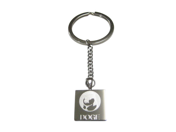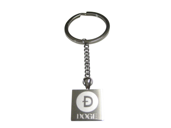 Silver Toned Square Etched Doge Coin Cryptocurrency Blockchain Pendant Keychain