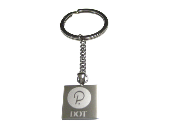 Silver Toned Square Etched Polkadot Coin Cryptocurrency Blockchain Pendant Keychain