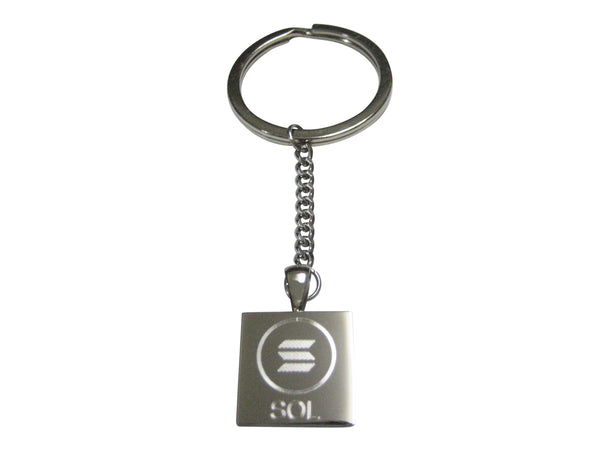 Silver Toned Square Etched Solana Coin Cryptocurrency Blockchain Pendant Keychain