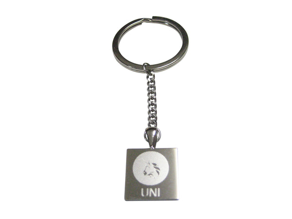 Silver Toned Square Etched Uniswap Coin Cryptocurrency Blockchain Pendant Keychain