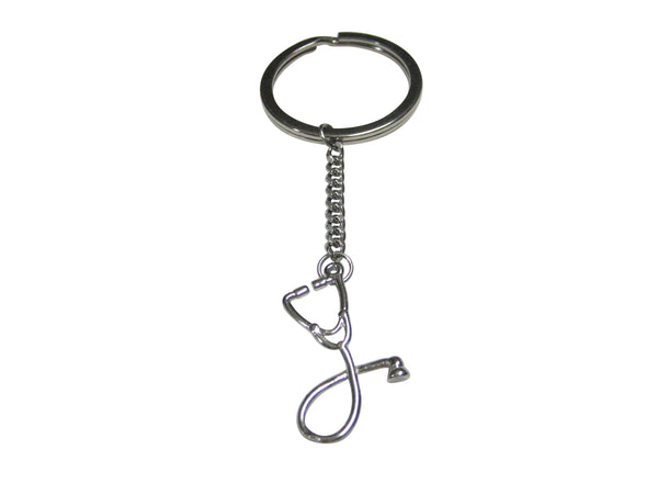 Silver Toned Vertical Medical Stethoscope Pendant Keychain