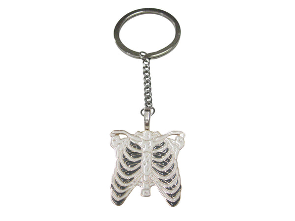 White Toned Anatomical Rib Cage Pendant Keychain