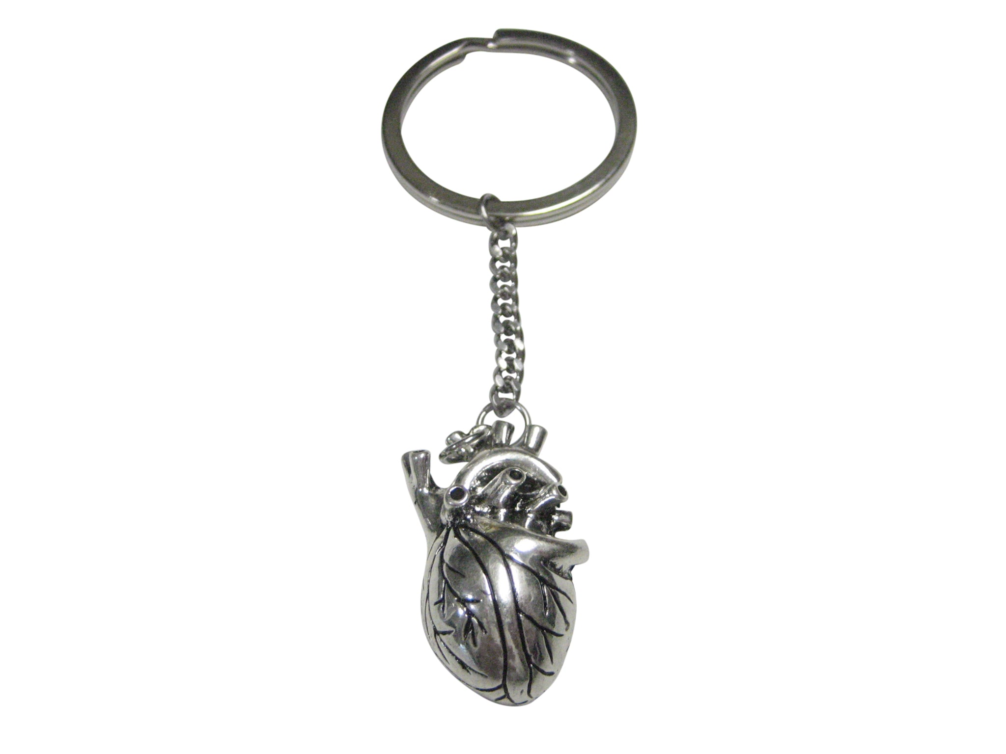 Black and Silver Toned Large Anatomical Heart Pendant Keychain