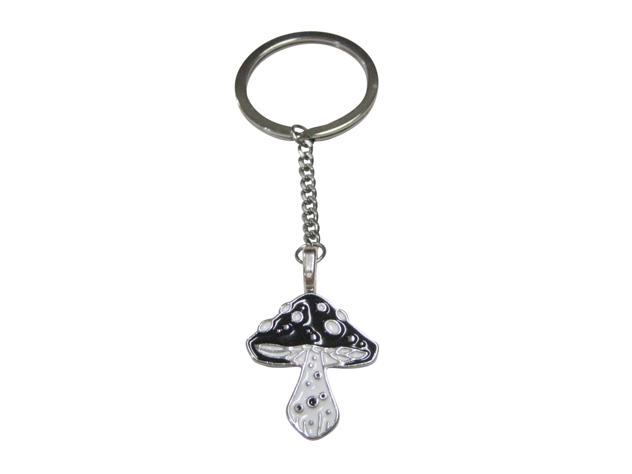 Black and White Toned Mushroom Fungus Pendant Keychain