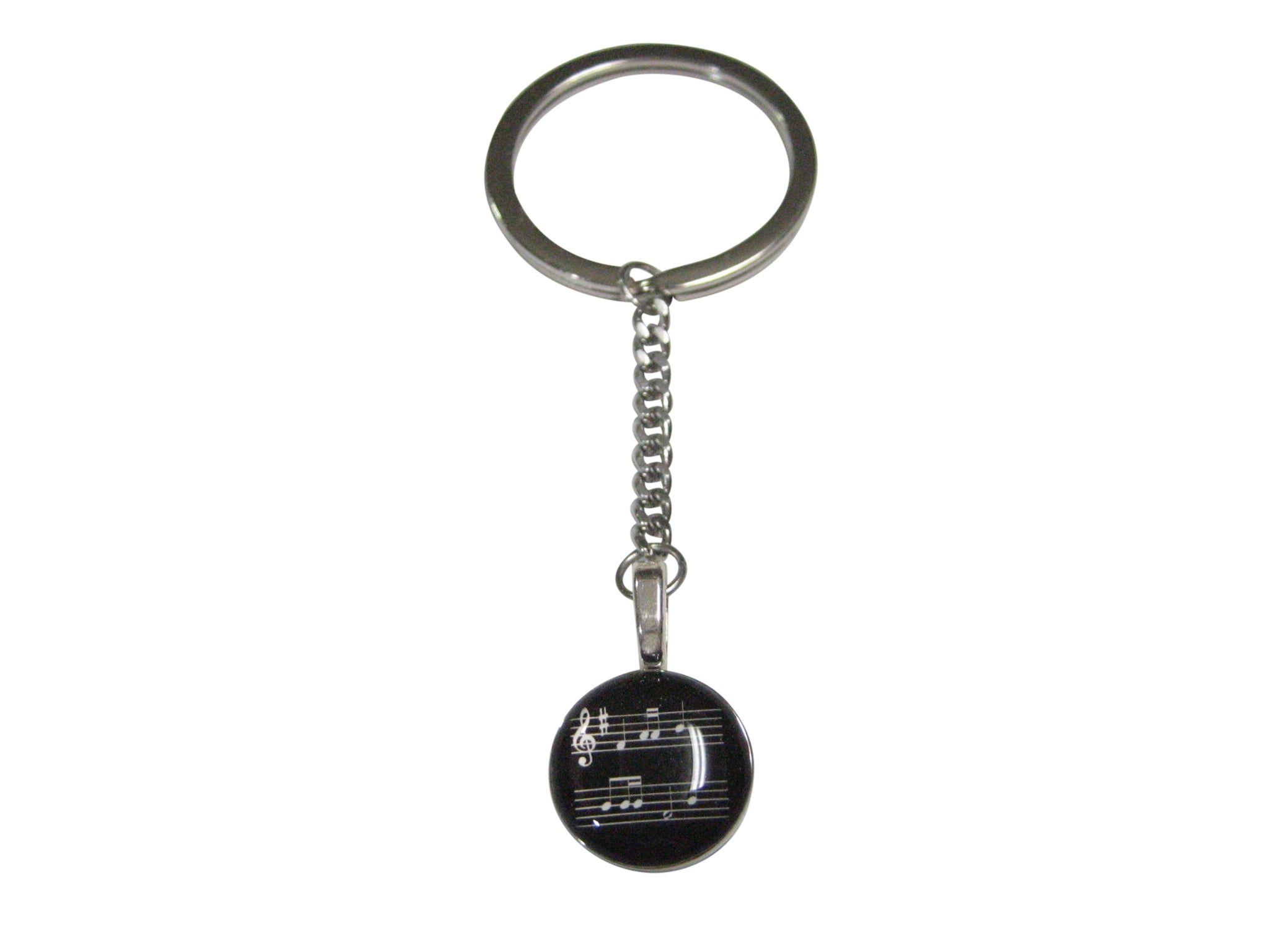 Black Toned Circular Music Sheet Pendant Keychain