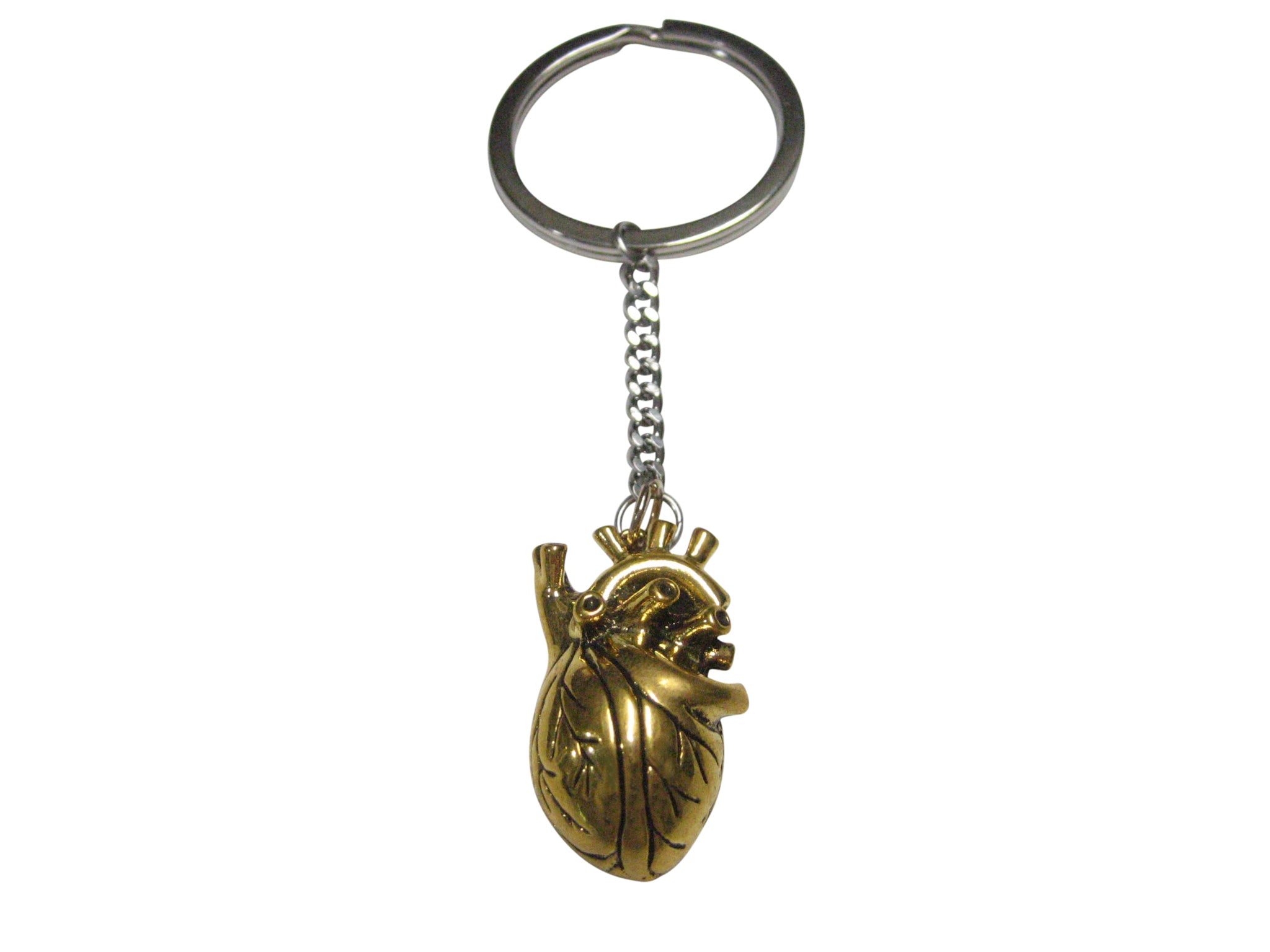 Gold and Black Toned Large Anatomical Heart Pendant Keychain