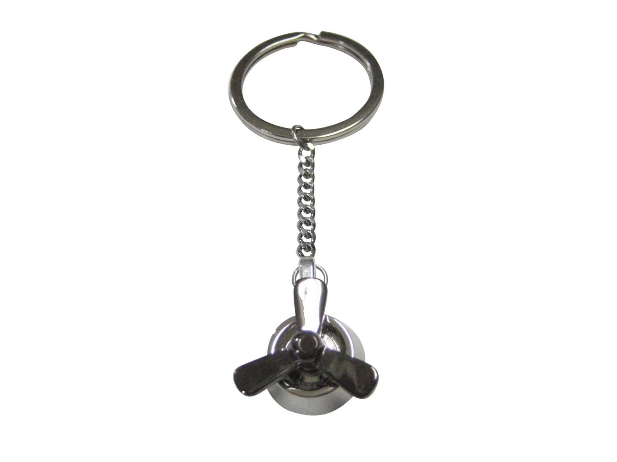 Gunmetal and Silver Toned Airplane Propellor Pendant Keychain