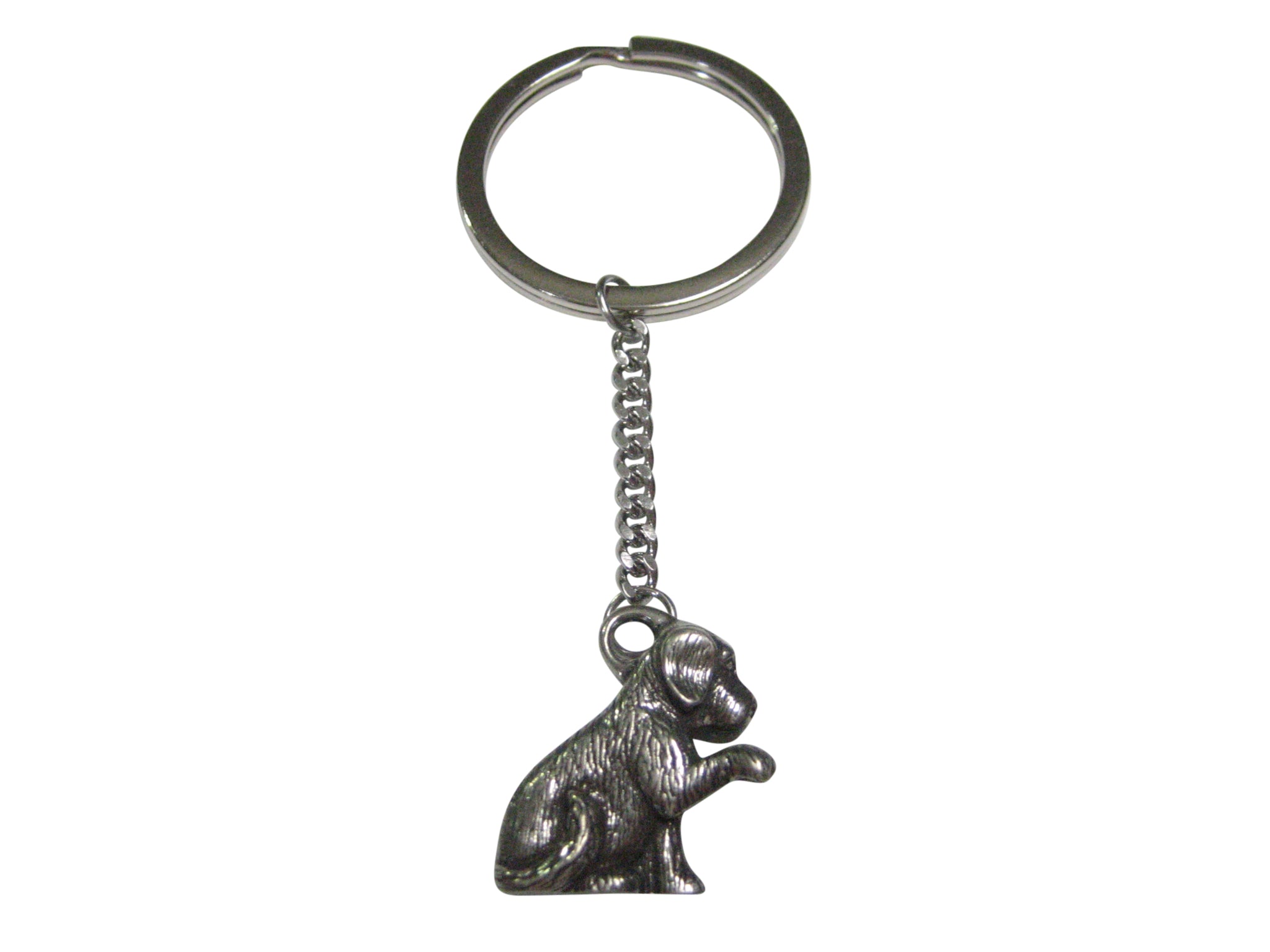 Silver Toned Dog With Paw Pendant Keychain