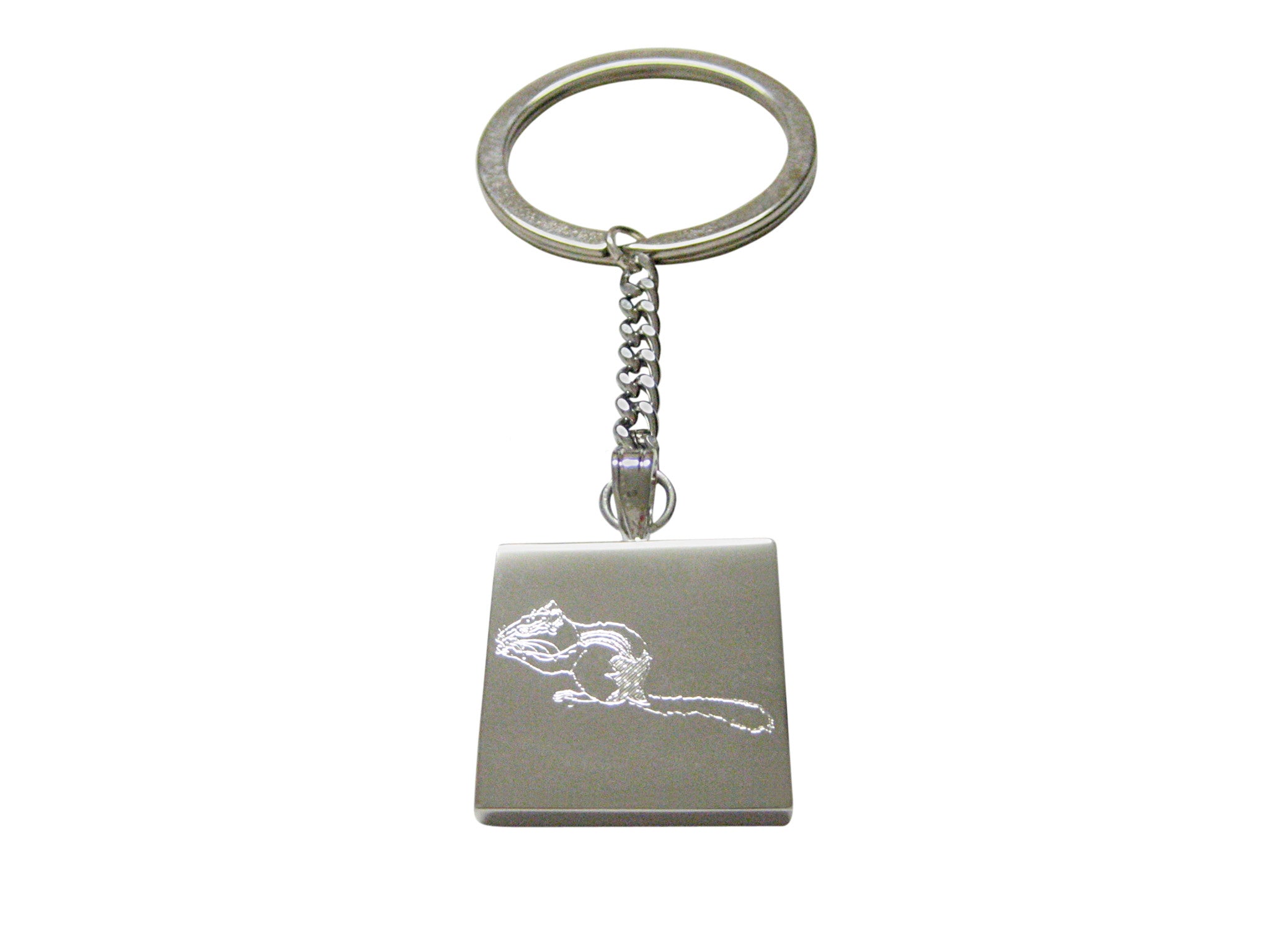 Silver Toned Etched Chipmunk Keychain