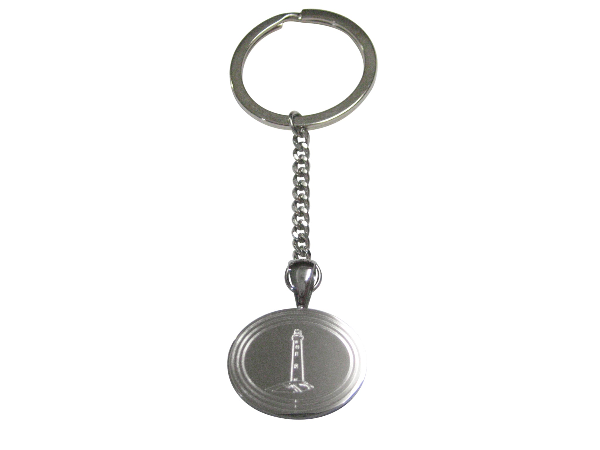 Silver Toned Etched Oval Nautical Lighthouse Pendant Keychain