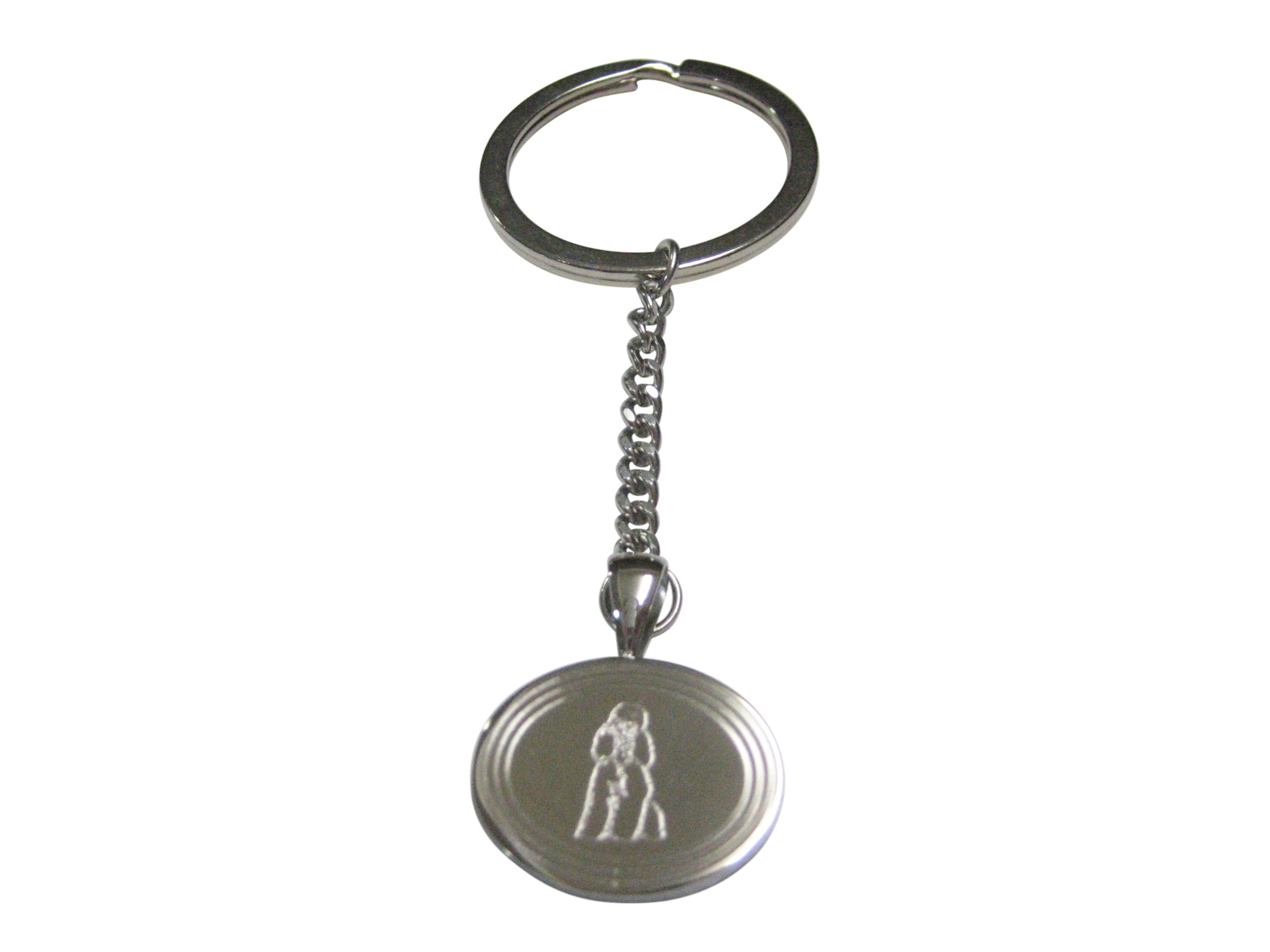Silver Toned Etched Oval Poodle Dog Pendant Keychain