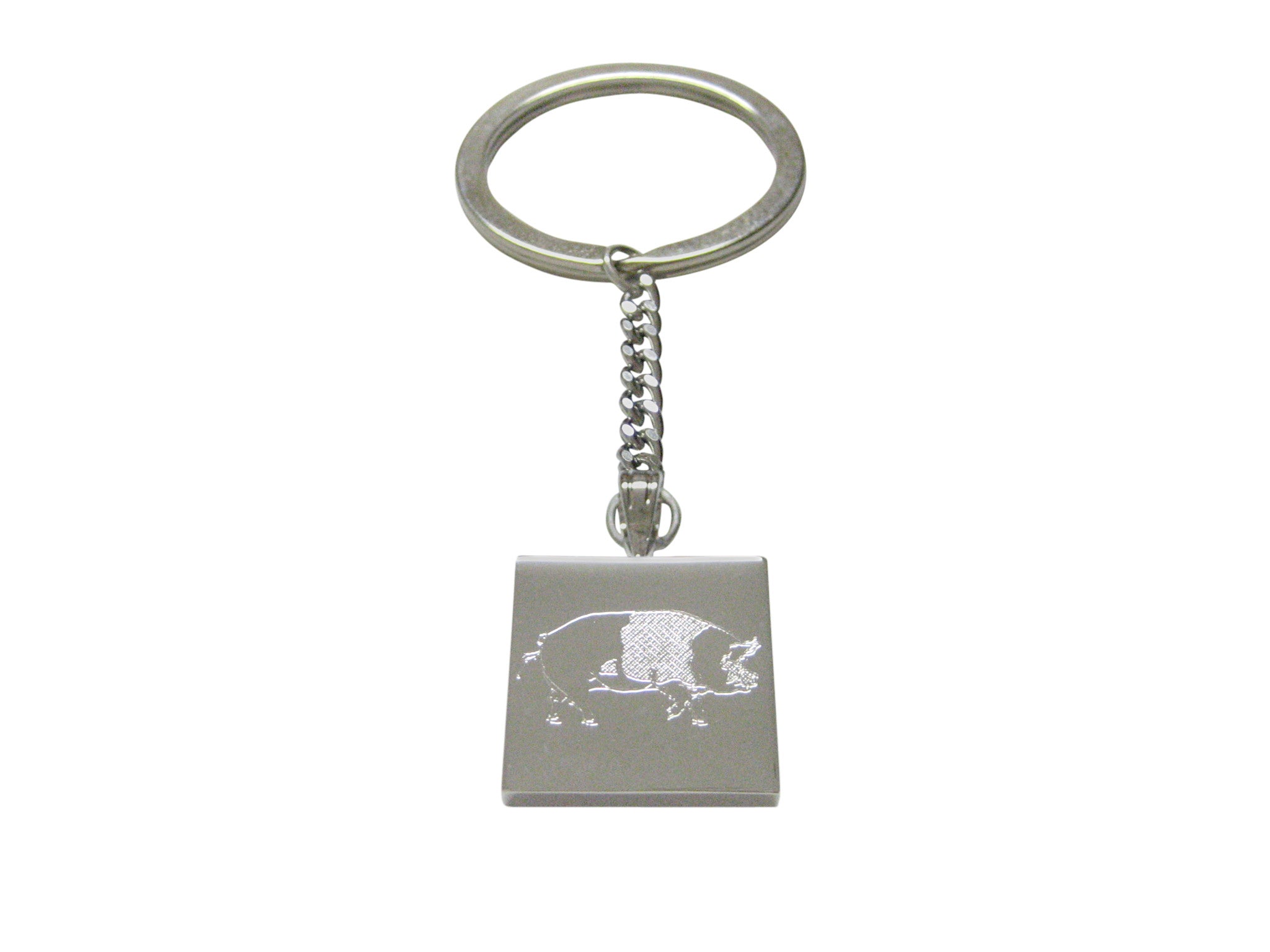 Silver Toned Etched Pig Keychain