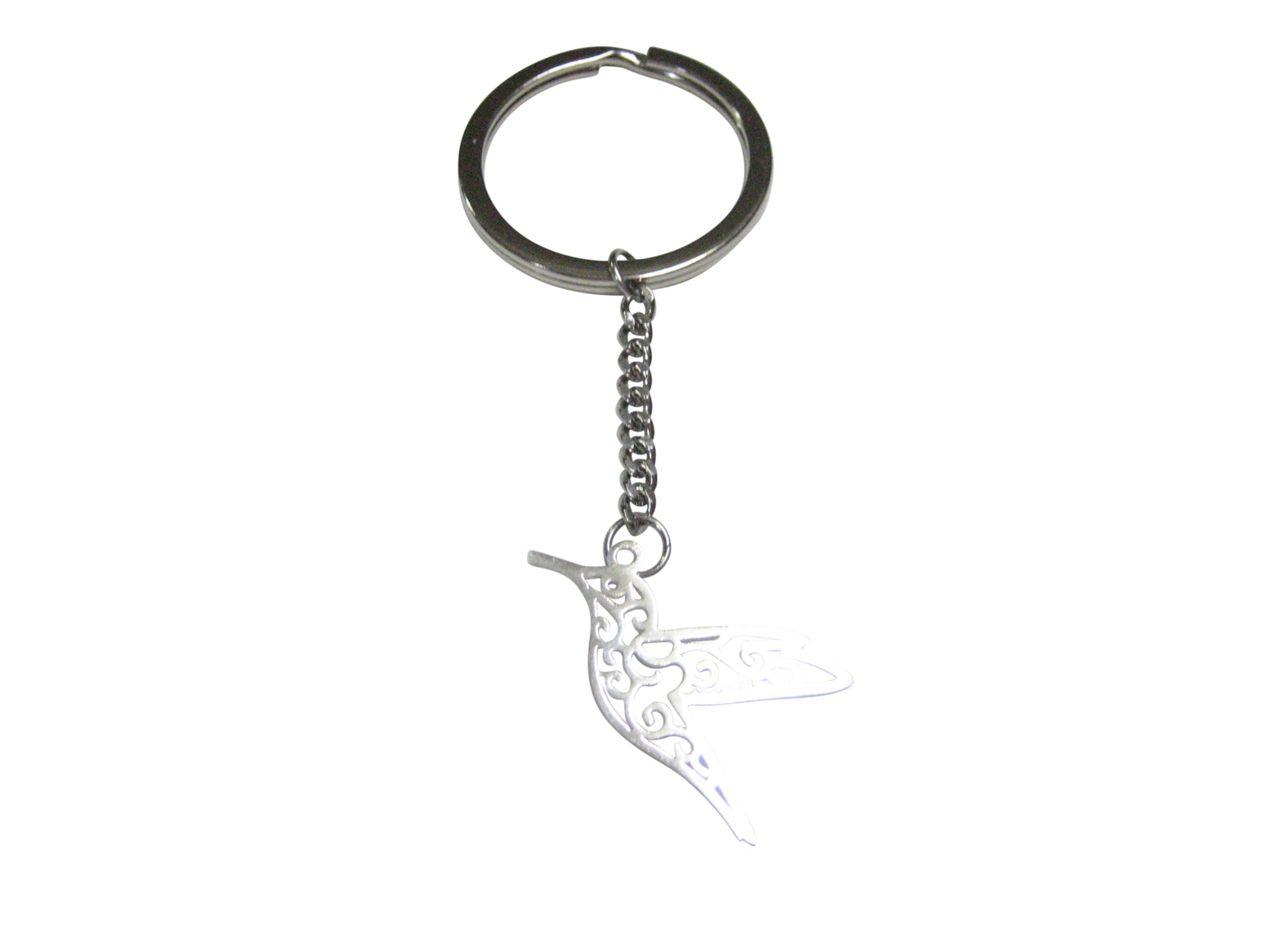 Silver Toned Flying Hummingbird Outline Pendant Keychain