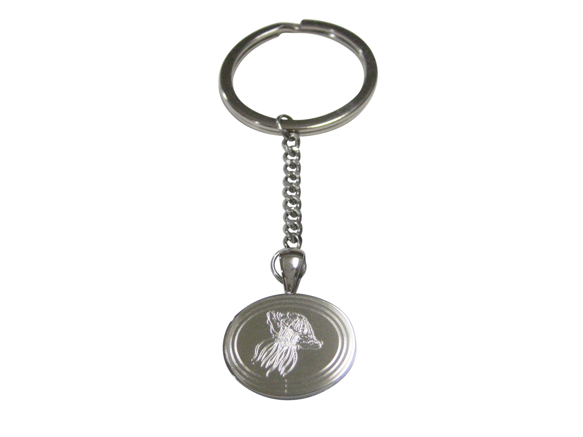 Silver Toned Oval Etched Jellyfish Pendant Keychain