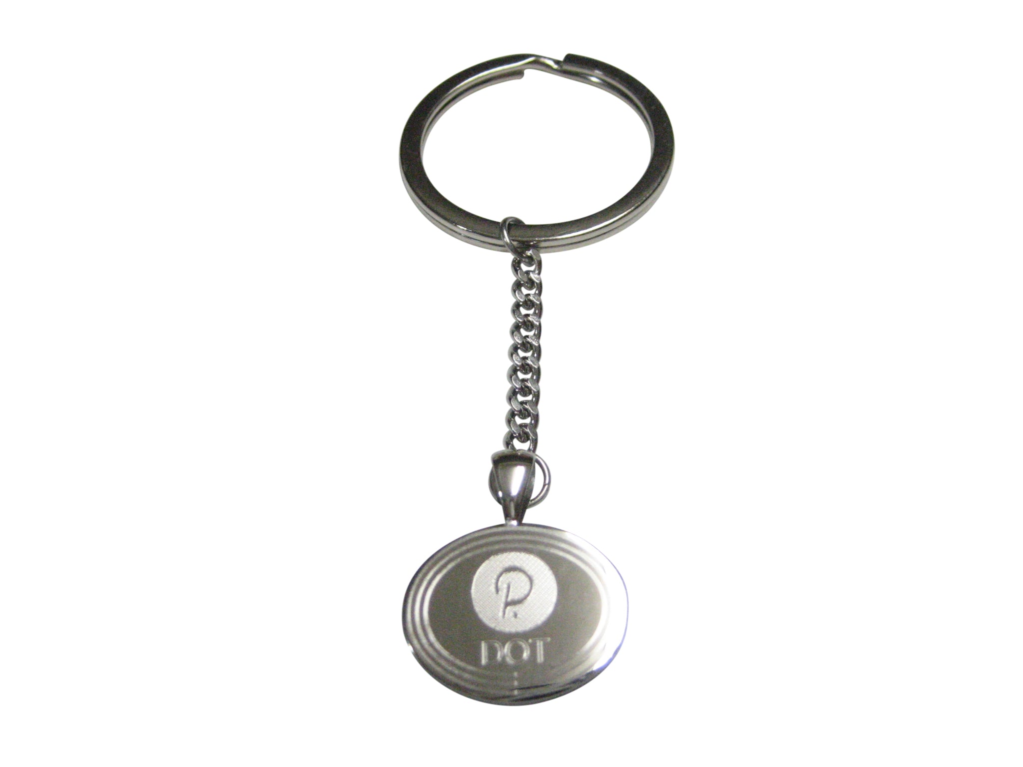 Silver Toned Oval Etched Polkadot Coin Cryptocurrency Blockchain Pendant Keychain