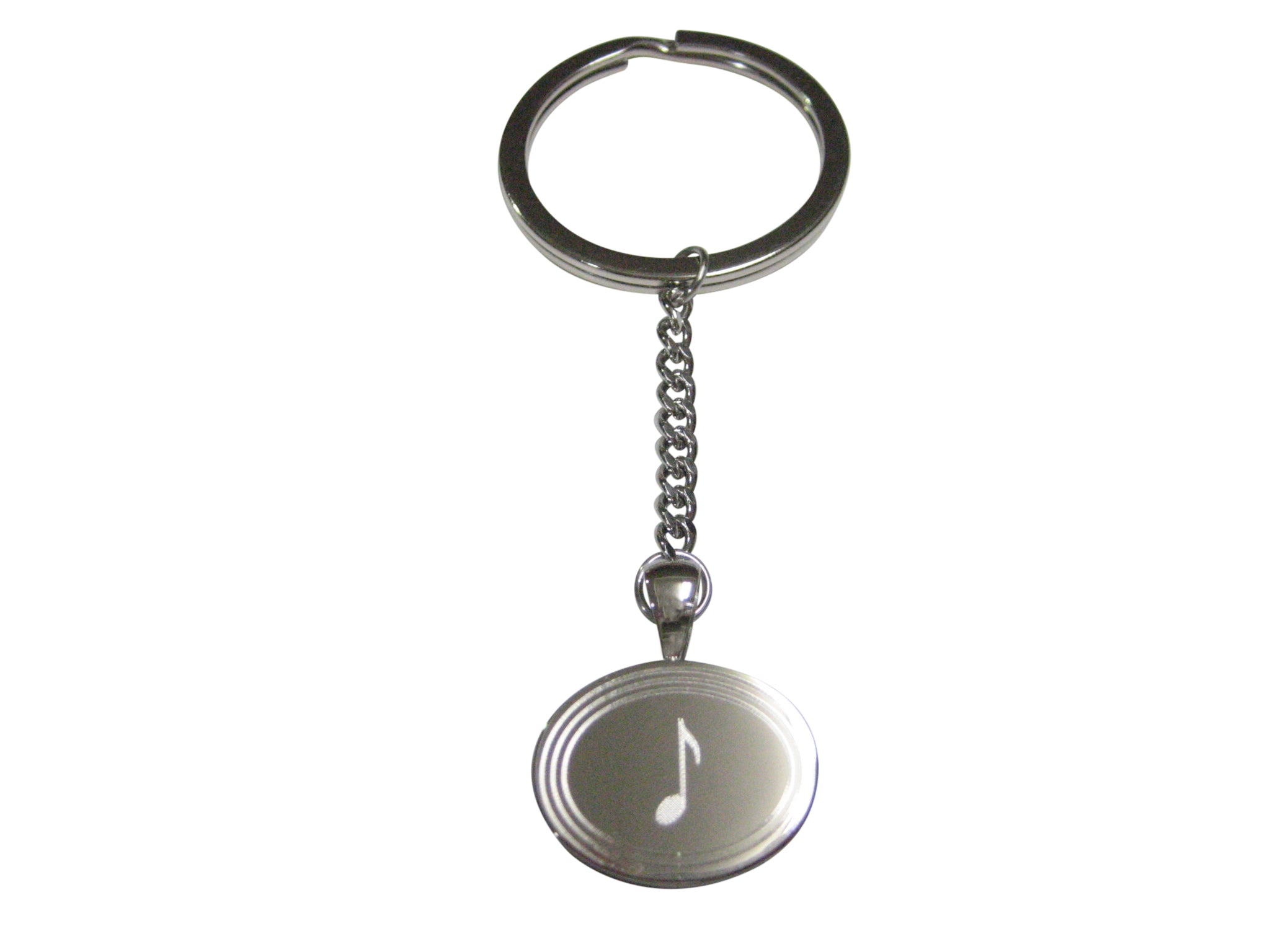 Silver Toned Oval Etched Single Quaver Musical Note Pendant Keychain