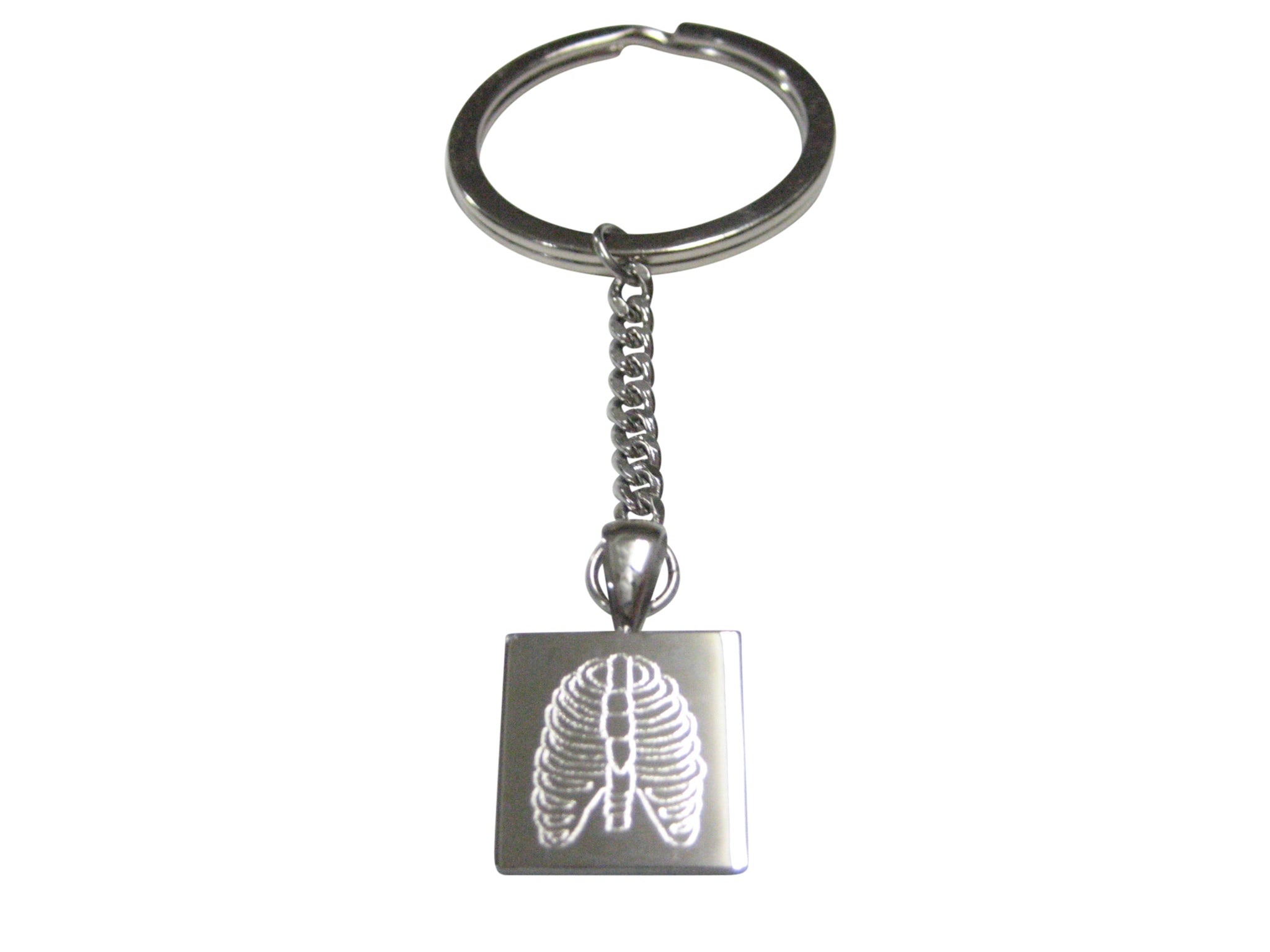Silver Toned Square Etched Anatomical Rib Cage Pendant Keychain
