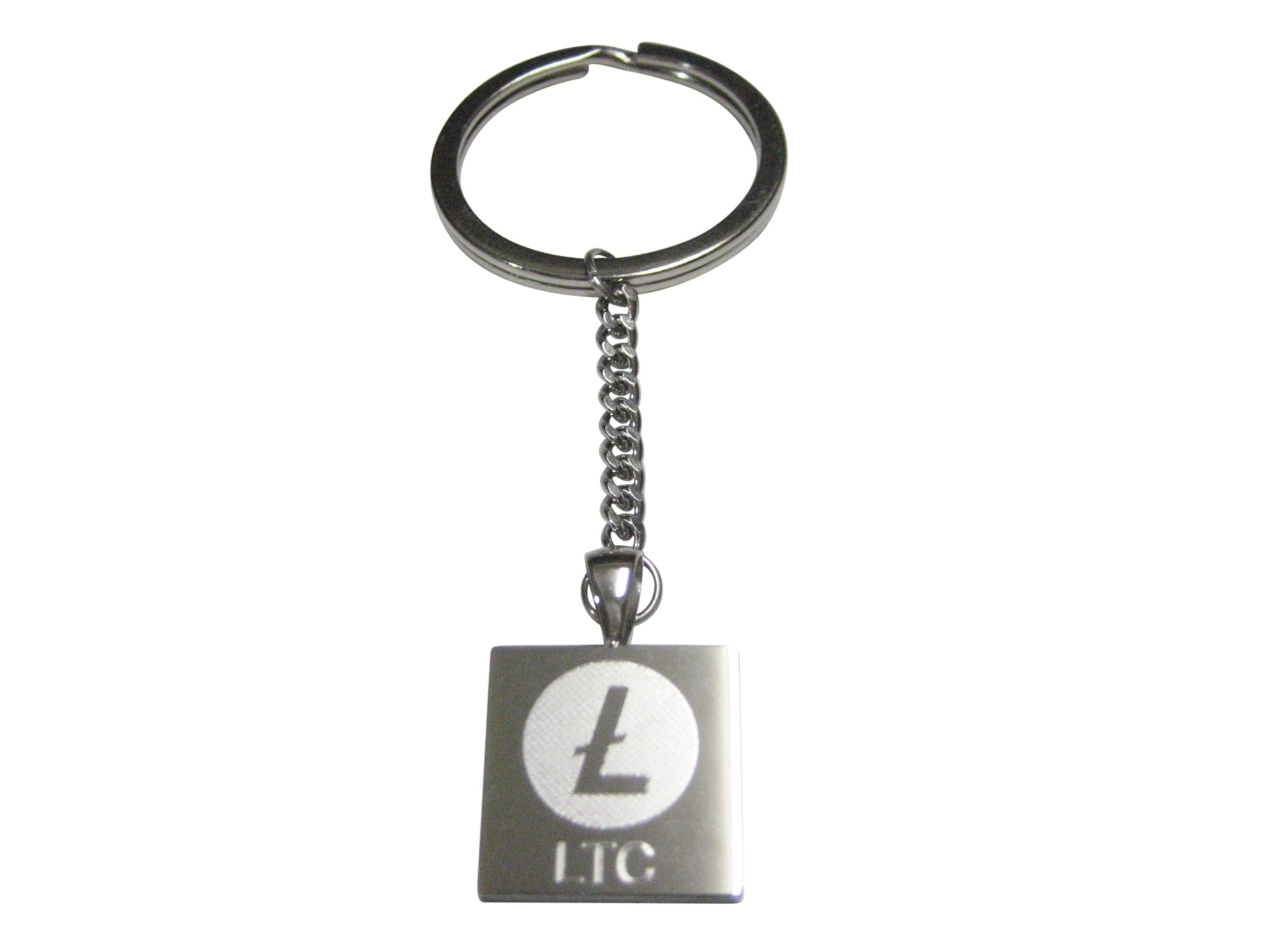 Silver Toned Square Etched Litecoin Coin Cryptocurrency Blockchain Pendant Keychain