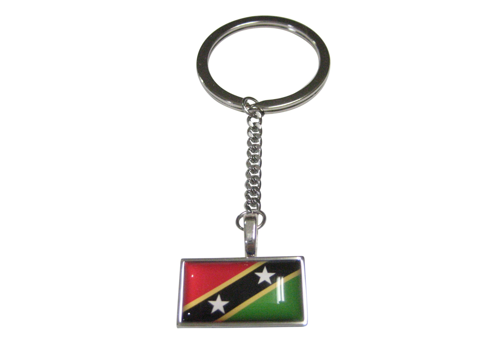 Thin Bordered Saint Kitts and Nevis Flag Pendant Keychain