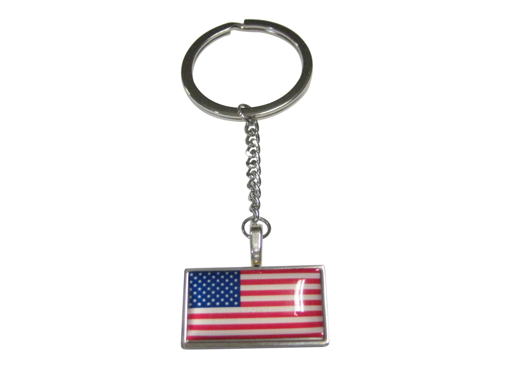Thin Bordered USA American Flag Pendant Keychain