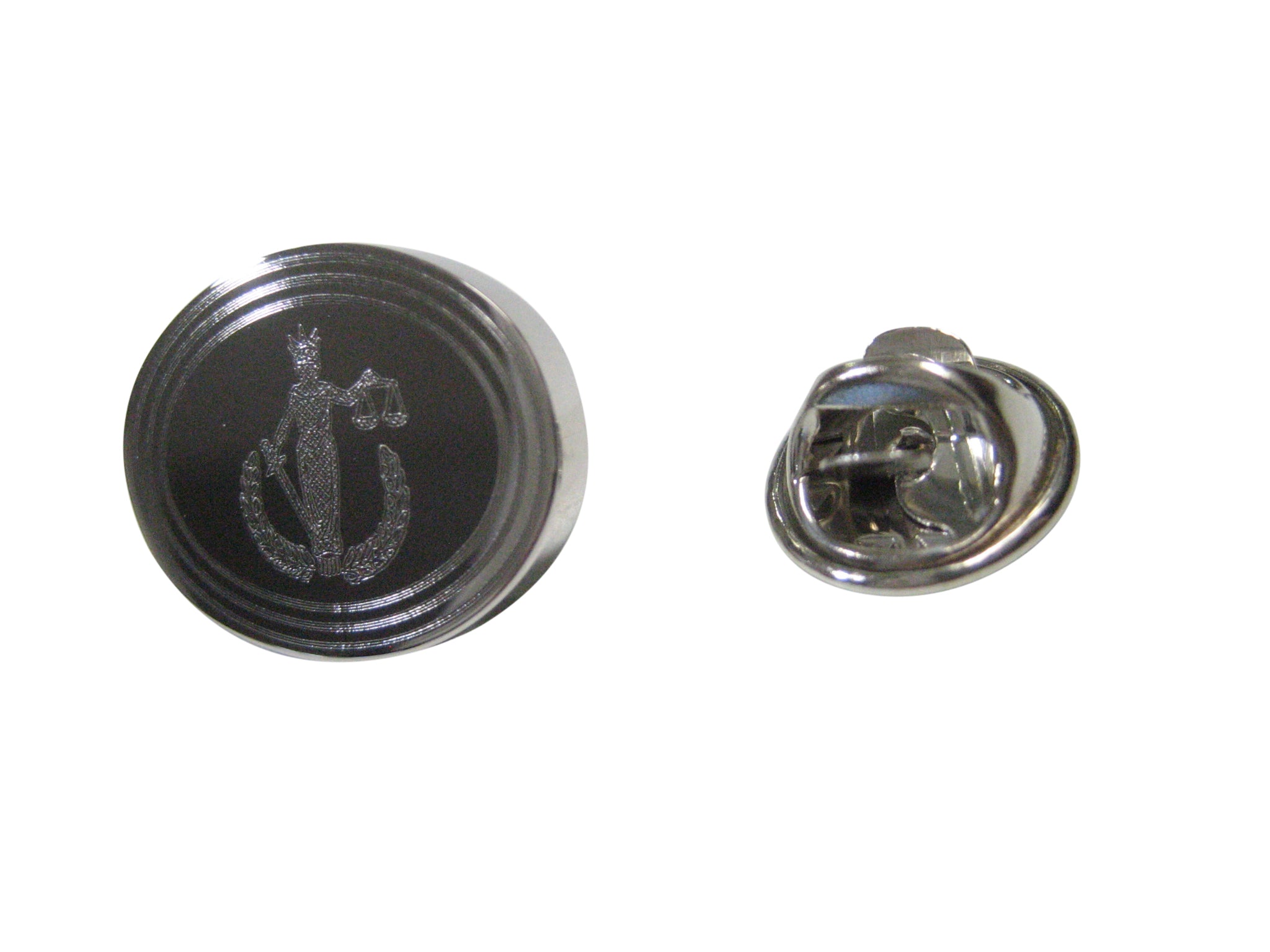 Silver Toned Etched Oval Lady Justice Lapel Pin