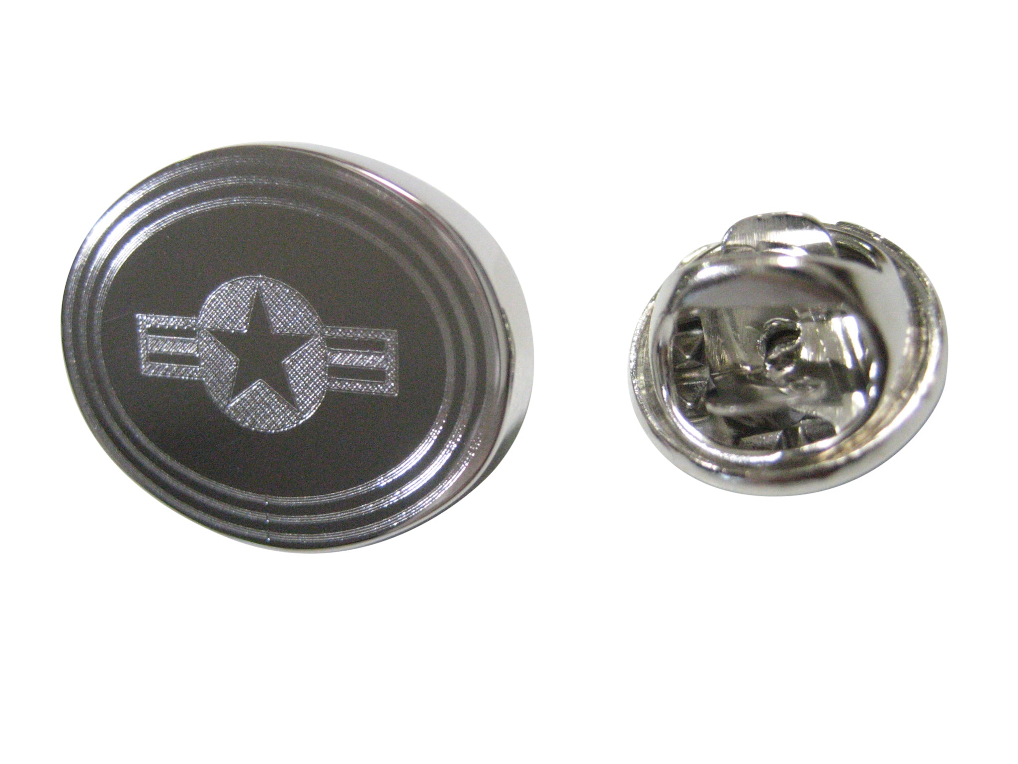 Silver Toned Etched Oval Roundel of US AirForce Lapel Pin