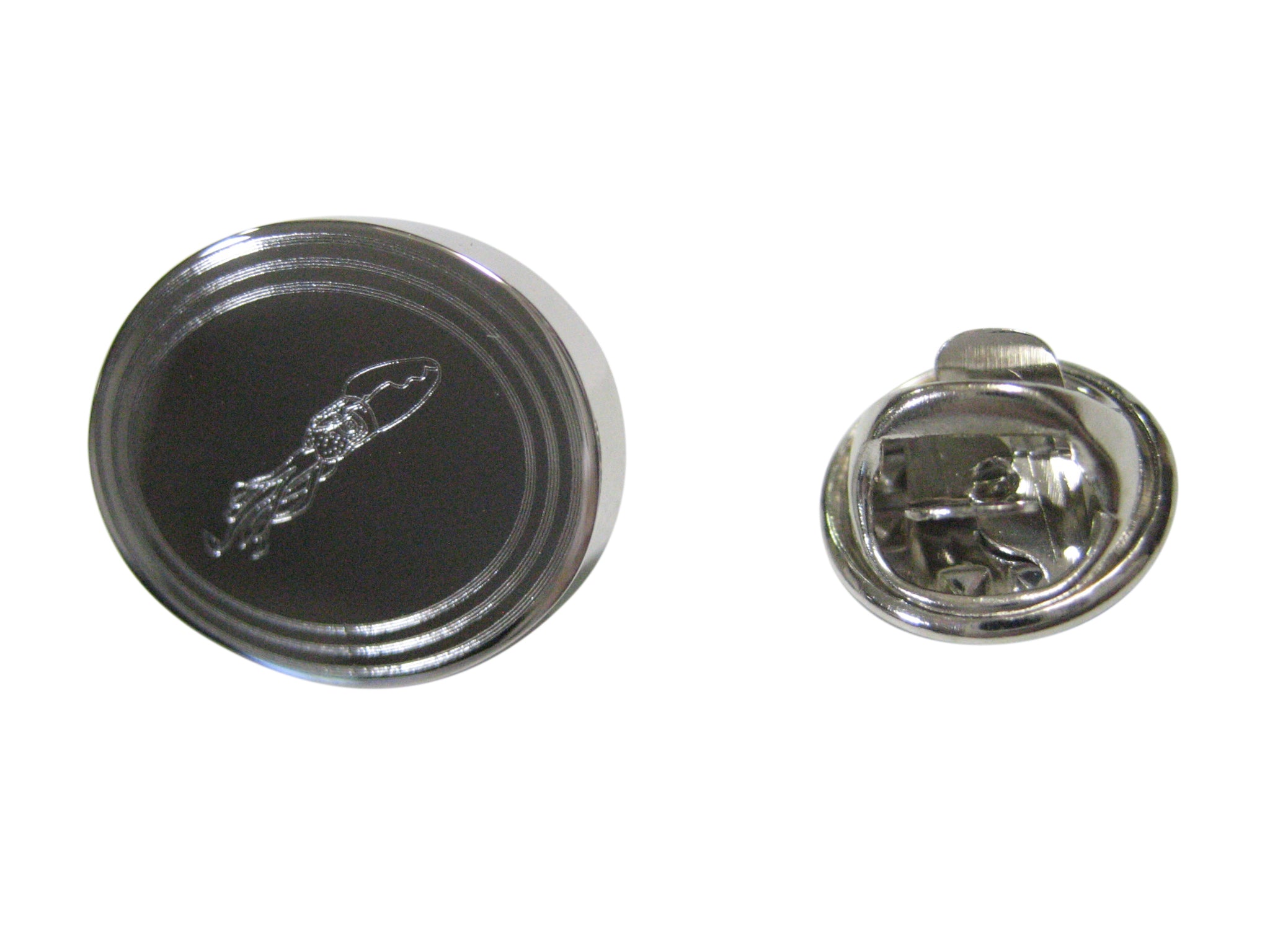Silver Toned Etched Oval Swimming Octopus Lapel Pin