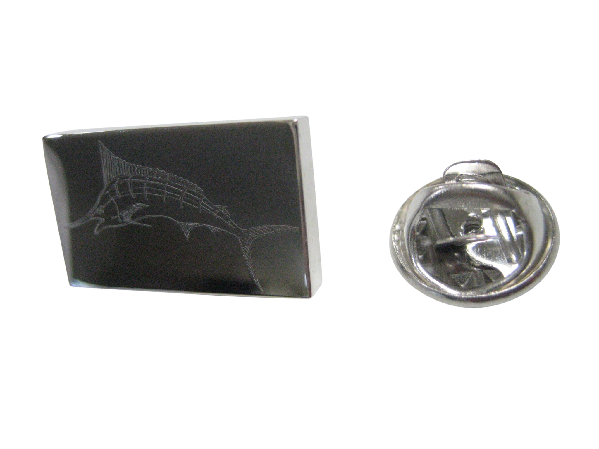 Silver Toned Etched Rectangular Etched Sailfish Marlin Fish Lapel Pin