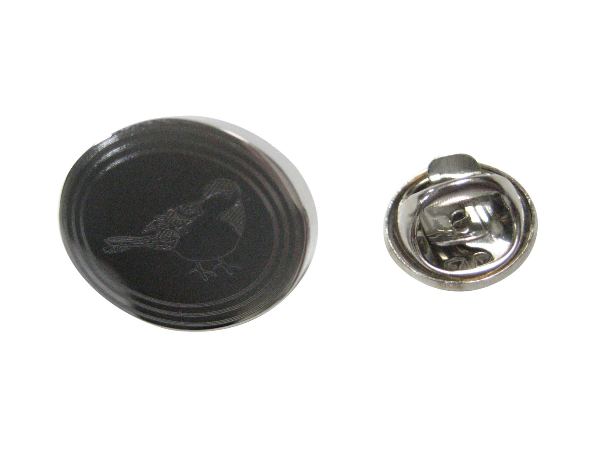 Silver Toned Oval Etched Chickadee Bird Lapel Pin